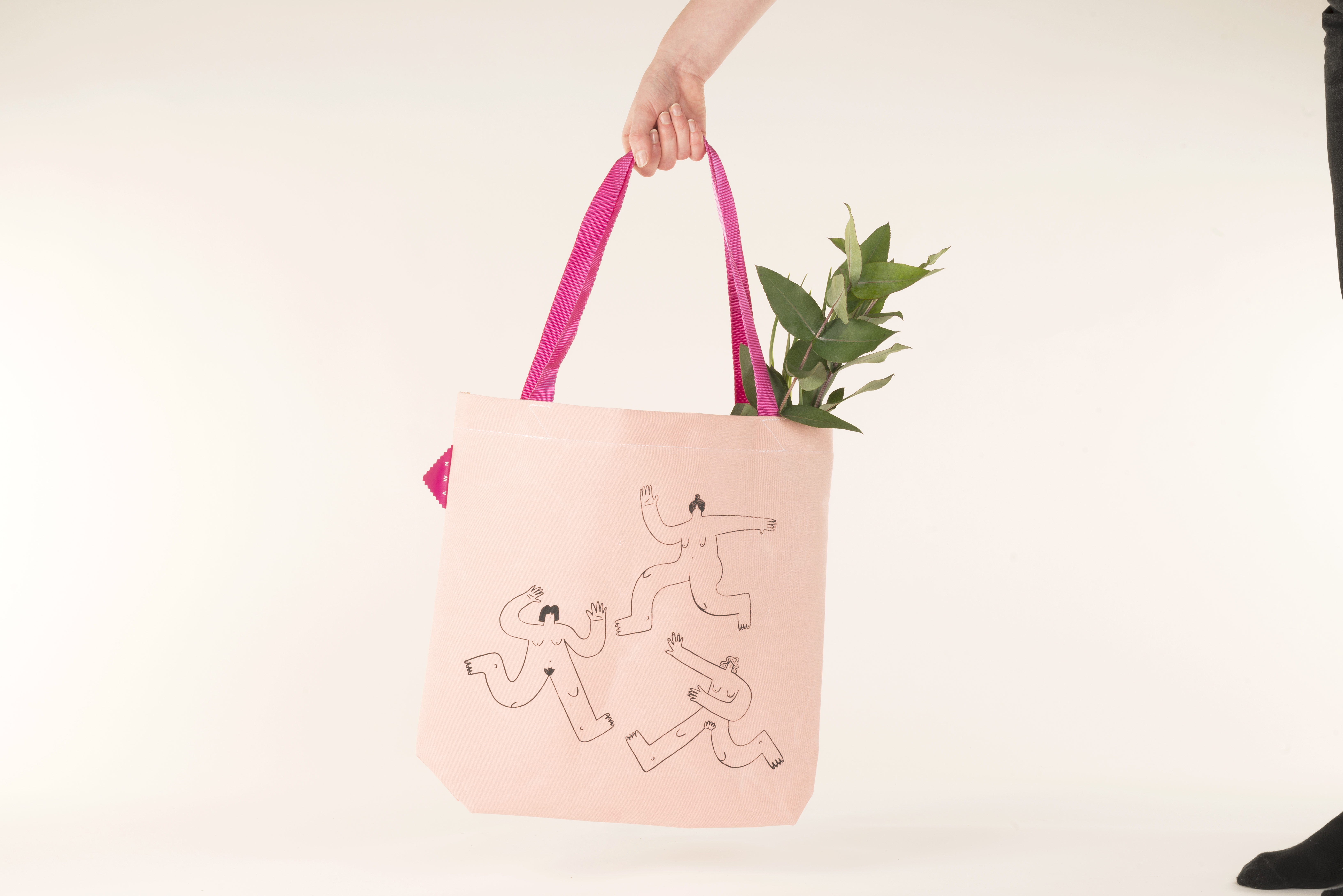 A collaboration with Awn; screen-printed illustrations onto bags made from awning off-cuts