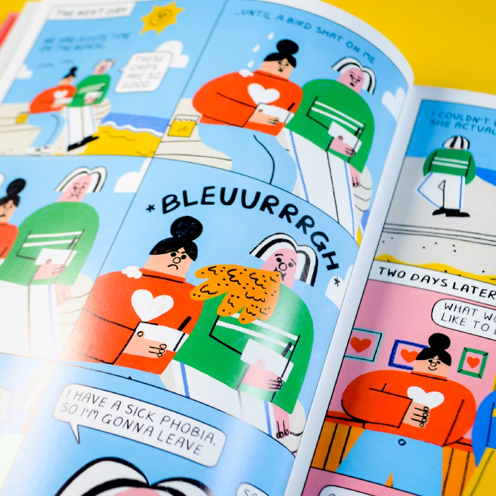 'Disaster Dates & Lucky Escapes', a graphic novel following a serial dater, Olive, who goes on a string terrible, weird, and funny dates. Will she ever find the one? Does the one even exist? You will have to read it to find out!