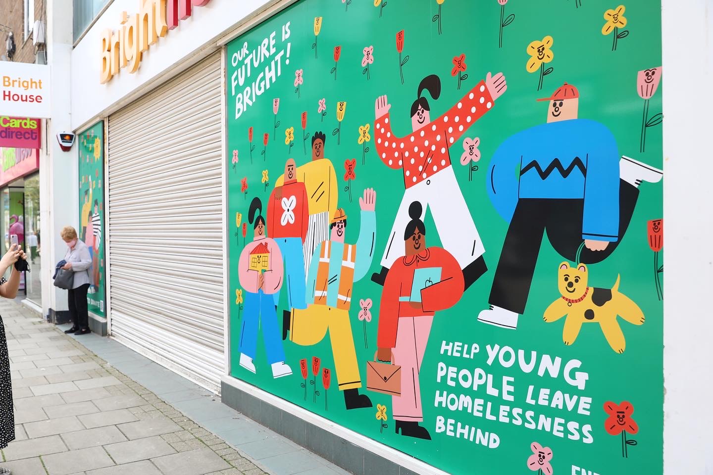 A vinyl mural for End Youth Homelessness UK, in Brighton and Worthing
